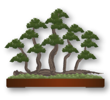 As time passes, some trees develop bald or barkless places on their trunks as a result of harsh weather conditions. The bald part usually begins at the place where the roots emerge from the ground, and grows increasingly thinner as it continues up the trunk. Intense sunlight will bleach these parts, forming a very characteristic part of the tree. With Bonsai the bark is removed with a sharp knife and the barkless spot is treated with lime sulfur in order to speed up the bleaching process. Click here for an image of all Bonsai styles.