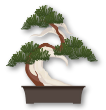 In nature this style of tree is found in areas densely populated by many other trees and competition is so fierce that the tree can only survive by growing taller then all others around it. The trunk grows crookedly upward and is completely without branching because the sun only hits the top of the tree. To make sure that it looks even tougher, some branches are “Jinned” (without bark). When the bark has been removed from one side of the trunk, the trunk is referred to as a “Shari”. The idea is to demonstrate that the tree has to struggle to survive. These trees are often placed in small, round pots.